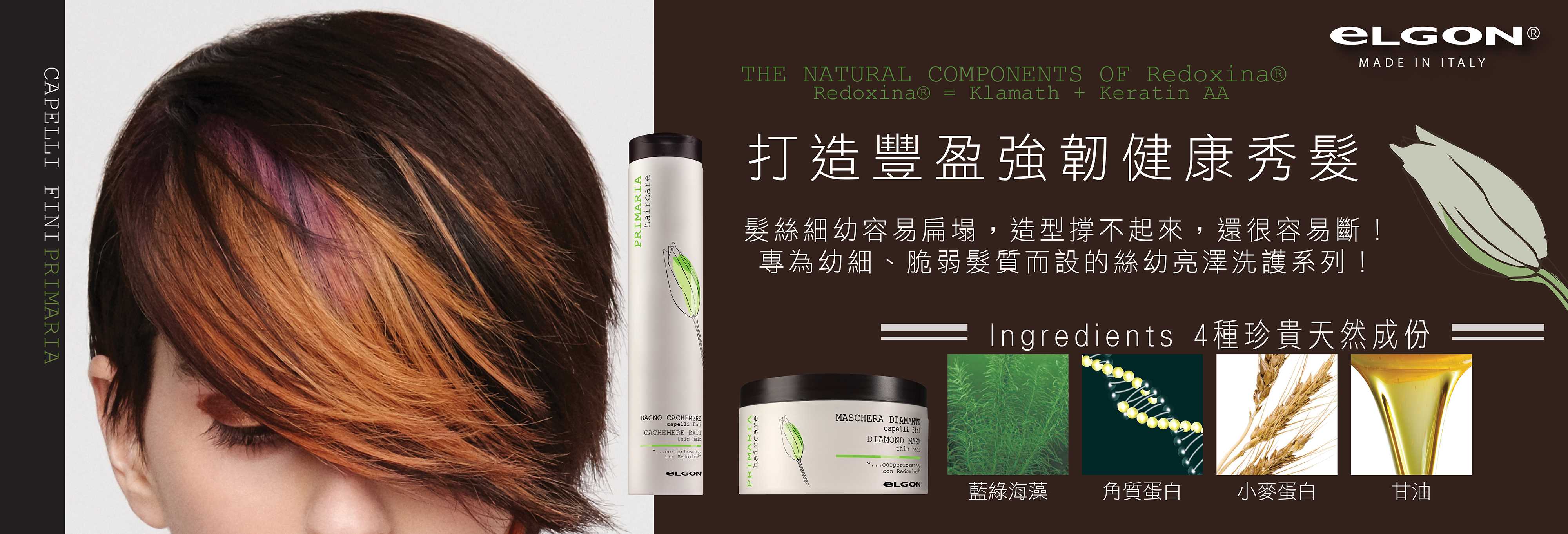 In the formulation, Redoxina®, combined with wheat proteins and cellulose derivatives, softening and conditioning, grants new body and softness to the whole hair length.